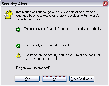 If that site is a secure site, then one of the checks is that the name they entered matches the name in the certificate. So if they entered www.kapesoft.com but ended up at a secure site that had a certificate issued for www.capesoft.com then they’ll see a warning.
