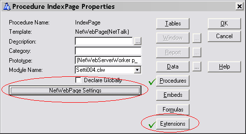 (String p_String)e. This procedure also has a “Include NetTalk Object” Extension template. Set the object name to ThisNetWorker, and the base class to NetWebServerWorker. The settings for this template are explained in more detail below.