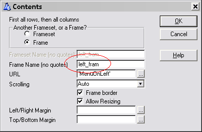 Target Frame: (Lookup only). The frame where the lookup will appear. This is usually left blank, or set to '_self'.
